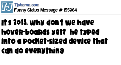 - # 147779 It's almost 2015, why don't we have hoverboards yet?" he typed into a pocket-sized device that can do everything.
