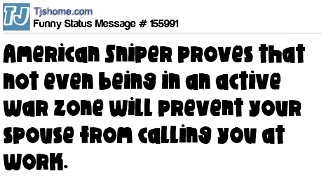 X  American Sniper proves that not even being in an active war zone will prevent your spouse from calling you at work.