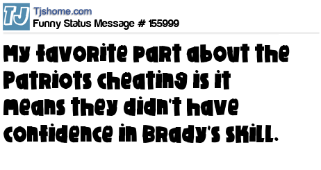 X says My favorite part about the Patriots cheating is it means they didn't have confidence in Brady's skill.