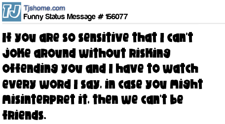 X says If you are so sensitive that I can't joke around without risking offending you and I have to watch every word I say, in case you might misinterpret it, then we can't be friends.