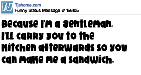 X says Because I'm a gentleman, I'll carry you to the kitchen afterwards so you can make me a sandwich.
