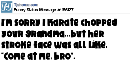 X I'm sorry I karate chopped your grandma...but her stroke face was all like, "Come at me, bro".