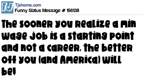 X The sooner you realize a min wage job is a starting point and not a career, the better off you (and America) will be!