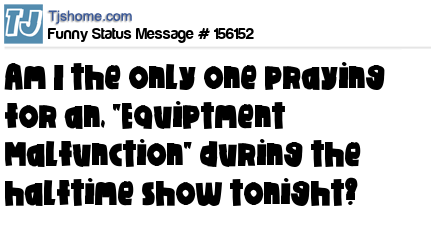 X Am I the only one praying for an, "Equiptment Malfunction" during the halftime show tonight?