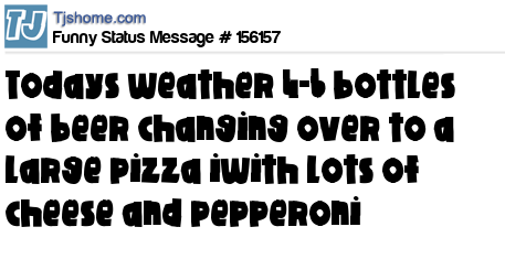 X says todays weather 4-6 bottles of beer changing over to a large pizza iwith lots of cheese and pepperoni