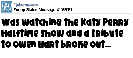 X says Was watching the Katy Perry Halftime Show and a tribute to Owen Hart broke out...