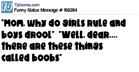 X says "Mom, why do girls rule and boys drool" "Well, dear.... there are these things called boobs"