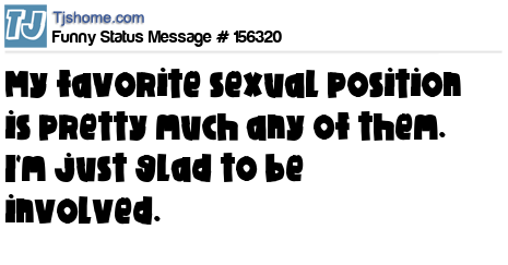X says My favorite sexual position is pretty much any of them. I'm just glad to be involved.
