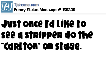 X says Just once I'd like to see a stripper do the "Carlton" on stage.