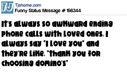 - # 160195 It's always awkward ending phone calls with people you love. I always say, "I love you" and they're like "Thank you for choosing Domino's Pizza."