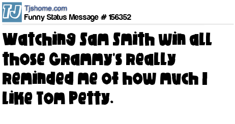 X says Watching Sam Smith win all those Grammy's really reminded me of how much I like Tom Petty.