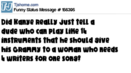 X says Did Kanye really just tell a dude who can play like 14 instruments that he should give his Grammy to a woman who needs 4 writers for one song?