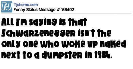 X says All I'm saying is that Schwarzenegger isn't the only one who woke up naked next to a dumpster in 1984.