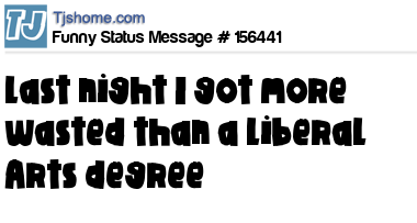 - # 156640 Tonight I'm getting more wasted than a Liberal Arts degree.