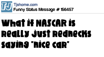 - # 64790 You know why Rednecks like it doggie style? So they can both watch Nascar together!!