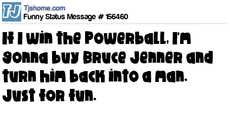 X says If I win the Powerball, I'm gonna buy Bruce Jenner and turn him back into a man. Just for fun.