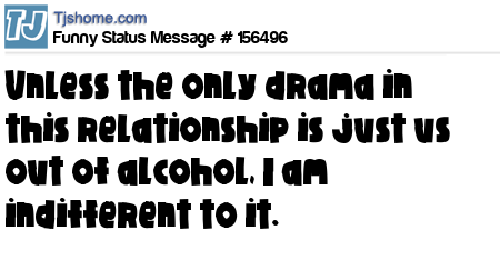 X says Unless the only drama in this relationship is just us out of alcohol, I am indifferent to it.
