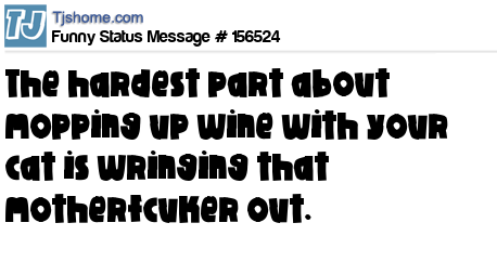 X says The hardest part about mopping up wine with your cat is wringing that motherfcuker out.