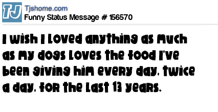 X says I wish I loved anything as much as my dogs loves the food I've been giving him every day, twice a day, for the last 13 years.