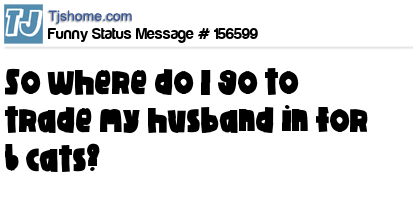 X says So where do I go to trade my husband in for 6 cats?
