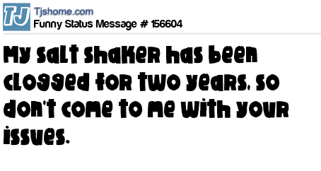 X says My salt shaker has been clogged for two years, so don't come to me with your issues.