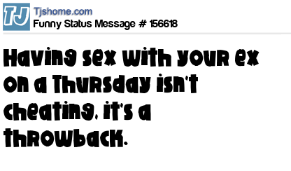 X says Having sex with your ex on a Thursday isn't cheating, it's a throwback.