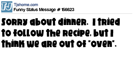 X says Sorry about dinner. I tried to follow the recipe, but I think we are out of "oven".
