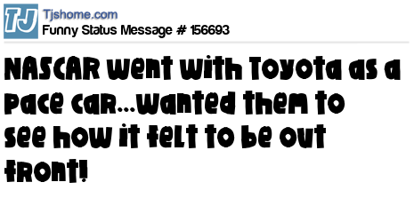 X says NASCAR went with Toyota as a pace car...wanted them to see how it felt to be out front!