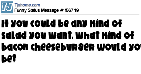 X says If you could be any kind of salad you want, what kind of bacon cheeseburger would you be?