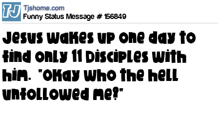 X says Jesus wakes up one day to find only 11 Disciples with him. "Okay who the hell unfollowed me?"
