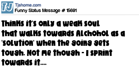 X thinks it's only a weak soul that walks towards Alchohol as a 'solution' when the going gets tough. Not me though - I sprint towards it....