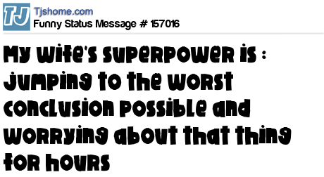 X says My wife's superpower is : jumping to the worst conclusion possible and worrying about that thing for hours