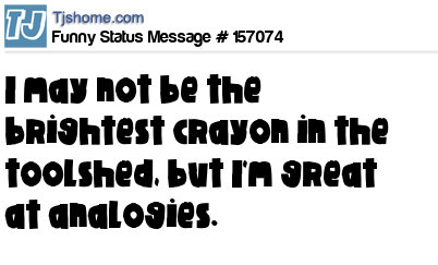 - # 168660 I may not be the brightest crayon in the tool shed but at least I'm great at analogies.