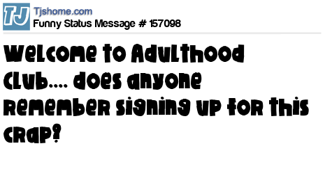 X says Welcome to Adulthood Club.... does anyone remember signing up for this crap?