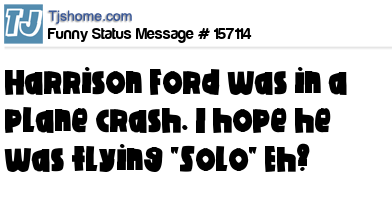 X says Harrison Ford was in a plane crash. I hope he was flying "Solo" Eh?