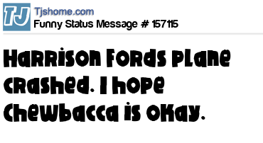 - # 157114 Harrison Ford was in a plane crash. I hope he was flying "Solo" Eh?