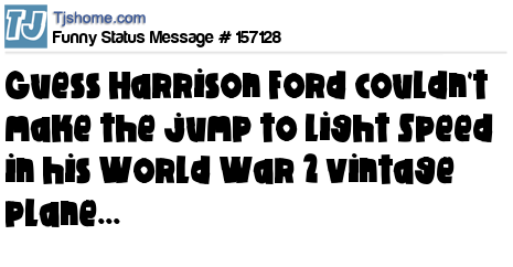 X says Guess Harrison Ford couldn't make the jump to Light Speed in his World War 2 vintage plane...