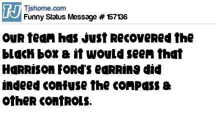 X Our team has just recovered the black box & it would seem that Harrison Ford's earring did indeed confuse the compass & other controls.