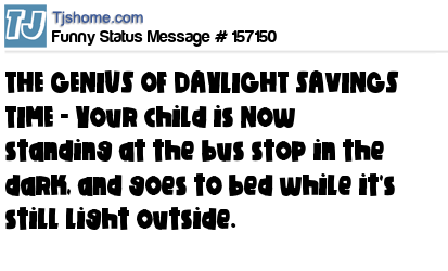 X  THE GENIUS OF DAYLIGHT SAVINGS TIME - Your child is Now standing at the bus stop in the dark, and goes to bed while it's still light outside.