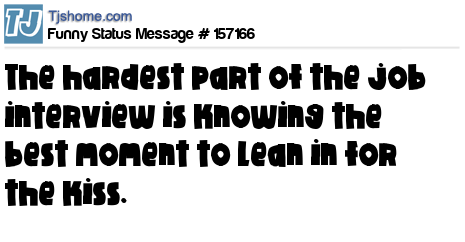 X says The hardest part of the job interview is knowing the best moment to lean in for the kiss.