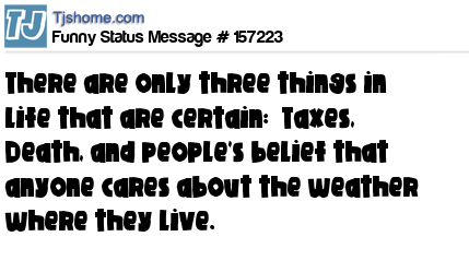 X says There are only three things in life that are certain: Taxes, Death, and people's belief that anyone cares about the weather where they live.