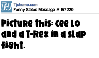 - # 155786 Had that dream again about Cee Lo Green getting into a slap fight with a Tyrannosaurus Rex.