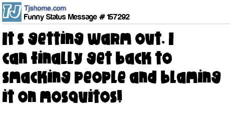 X says It’s getting warm out. I can finally get back to smacking people and blaming it on mosquitos!