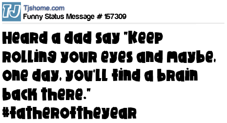 X says Heard a dad say "Keep rolling your eyes and maybe, one day, you'll find a brain back there." #fatheroftheyear
