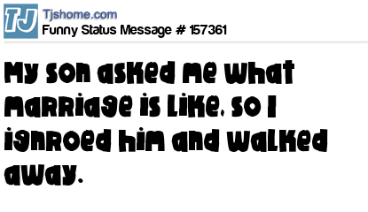 X says My son asked me what marriage is like, so I ignroed him and walked away.