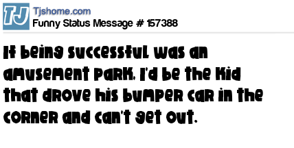 X says If being successful was an amusement park, I'd be the kid that drove his bumper car in the corner and can't get out.