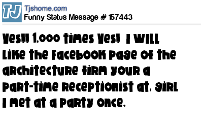 X says Yes!! 1,000 times Yes! I WILL like the Facebook page of the architecture firm your a part-time receptionist at, girl I met at a party once.