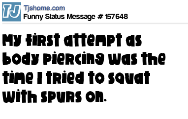 X says My first attempt as body piercing was the time I tried to squat with spurs on.