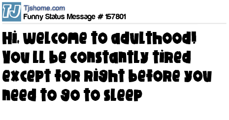 - # 157153 Adulthood is fun because by the time you're finally old enough to go out whenever you want you're too tired to do it.