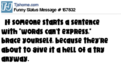 X If someone starts a sentence with "words can't express," brace yourself, because they're about to give it a hell of a try anyway.